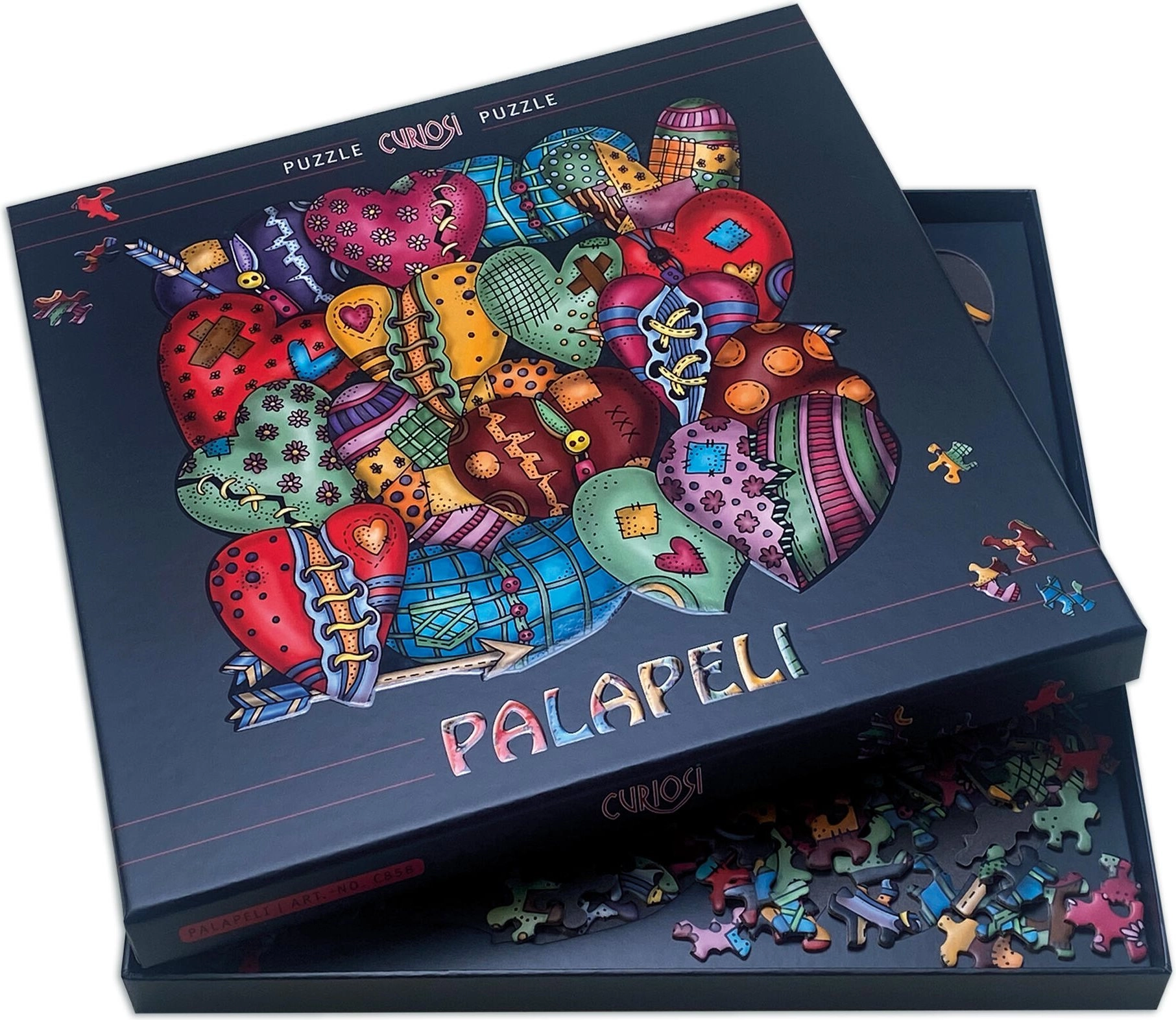 Palapeli Hjerte-puslespillet giver en usædvanlig samleoplevelse takket være det håndlavede farvemotiv og de utraditionelle brikformer. Resultatet er et designstykke, der tager sig flot ud i indretningen.