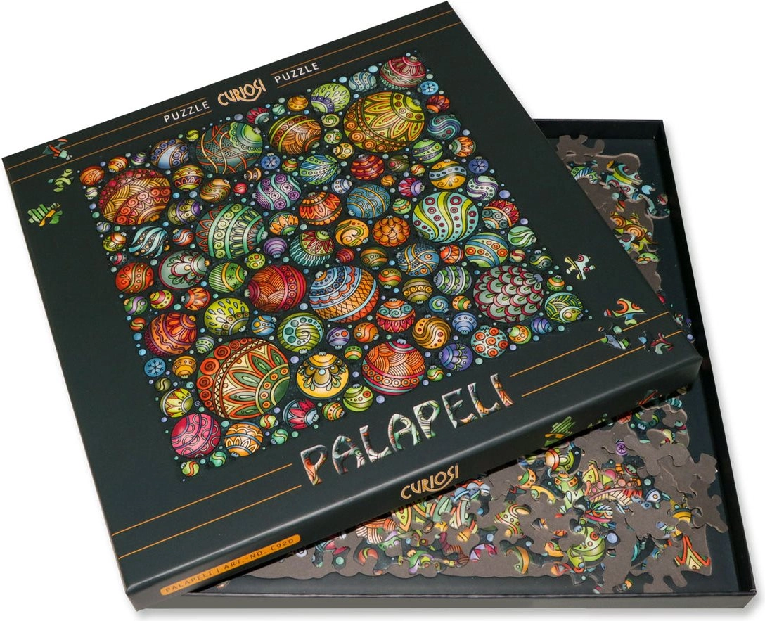 Nyd en unik pusleoplevelse med Palapeli, som skiller sig ud med et håndlavet, farverigt motiv fyldt med livlige kugler. Takket være de utraditionelt formede brikker er puslespillet både sjovt, kreativt og visuelt iøjnefaldende.