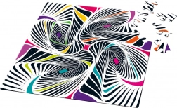 Det firkantede puslespil Curiosi Q Shake – Mønster II vil glæde alle, der søger noget andet end klassisk puslespilslægning. Takket være det originale motiv og de utradiotionelle brikformer byder det på en behagelig udfordring og samtidig afslapning. Når det er lagt, får du et kompakt billede på ca. 12,5 × 12,5 cm, som også egner sig godt som dekoration.