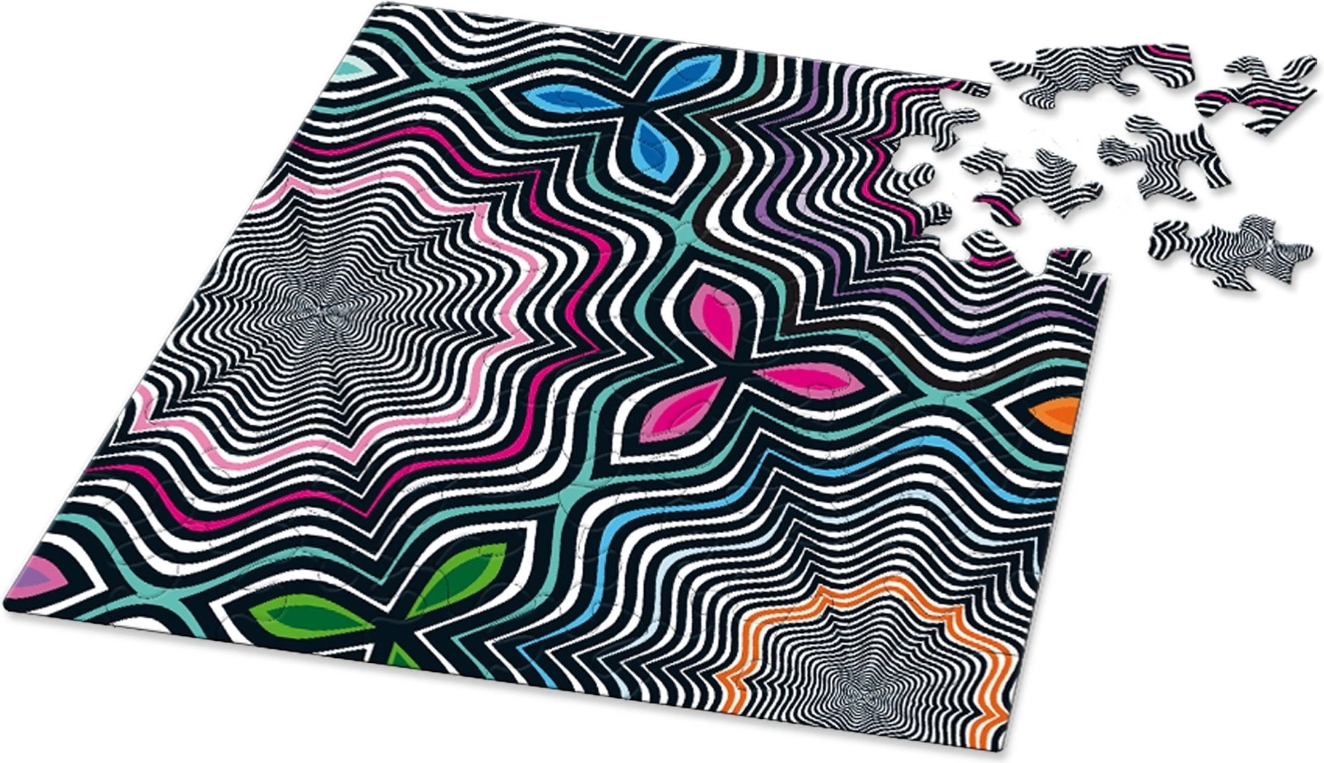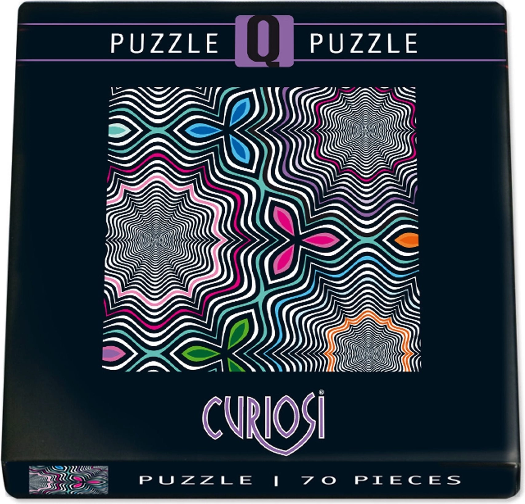 Curiosi Q Shake mønster VI giver en unik pusleoplevelse. De utraditionelt formede brikker fastholder opmærksomheden og underholder, mens det elegante kvadratiske format tager sig flot ud på hylden eller i en ramme.