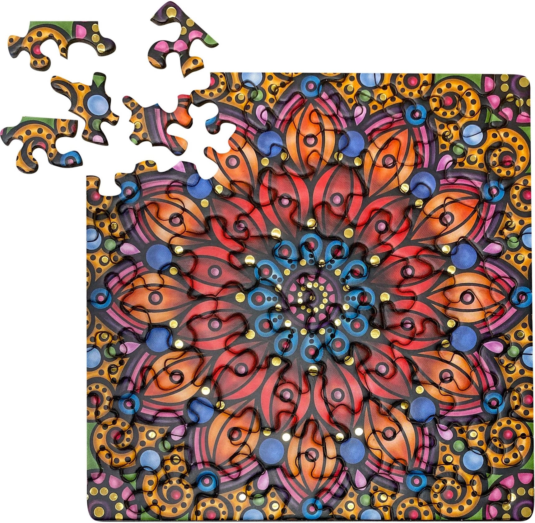 Dette kvadratiske puslespil vil glæde alle, der elsker udfordringer i et lille format. Takket være de utraditionelle brikformer er samlingen både underholdende og visuelt iøjnefaldende, mens den gyldne glans giver det færdige billede et luksuriøst præg.