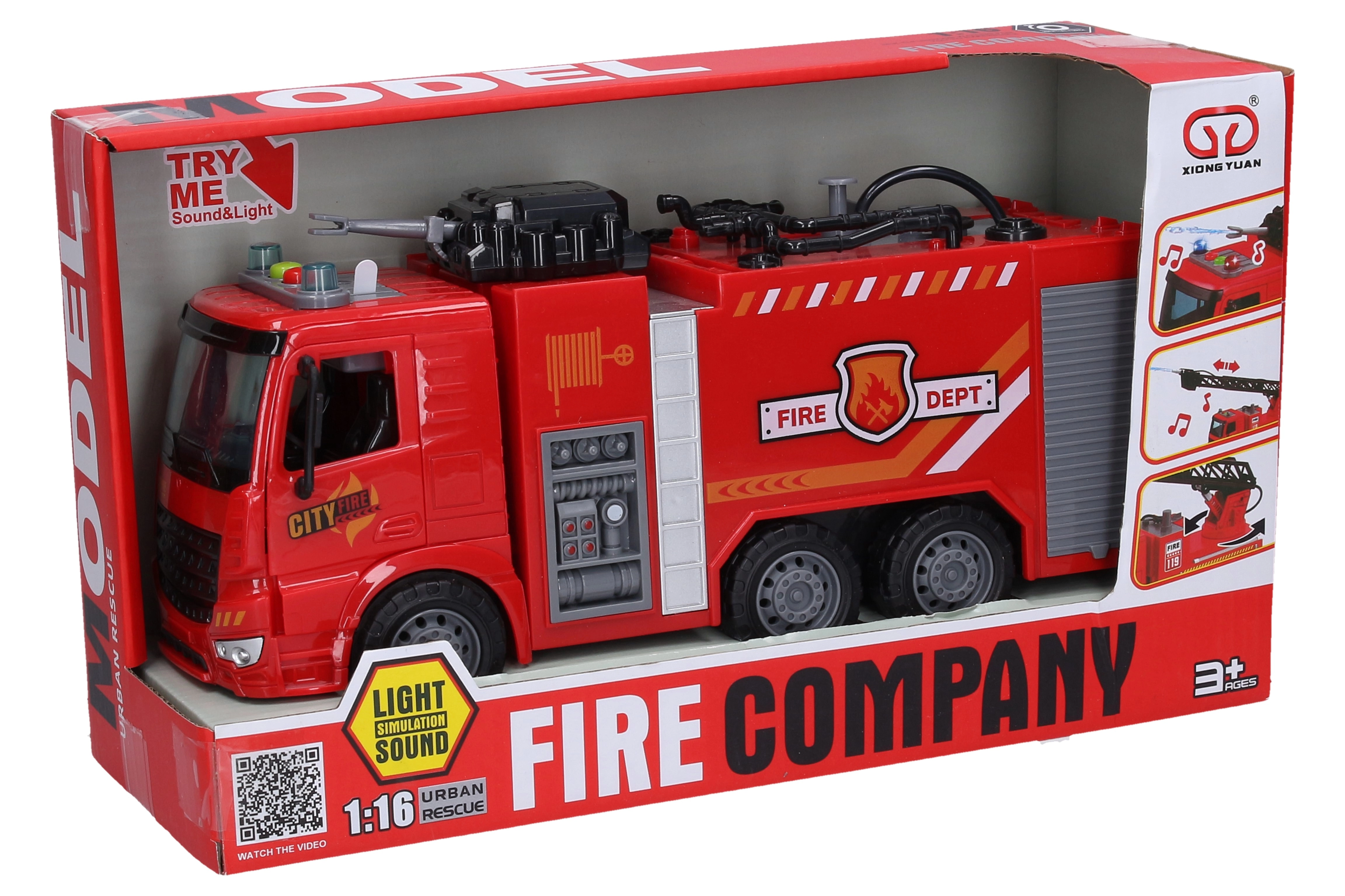 Denne detaljerede brandbil giver masser af action: efter at have fyldt vandtanken inde i tankvognen kan du ved at trykke på knappen på tanken sprøjte rigtigt vand. Knapperne på kabinen aktiverer lys- og lydeffekter, som forstærker legeoplevelsen og stimulerer de små redningsfolks fantasi.