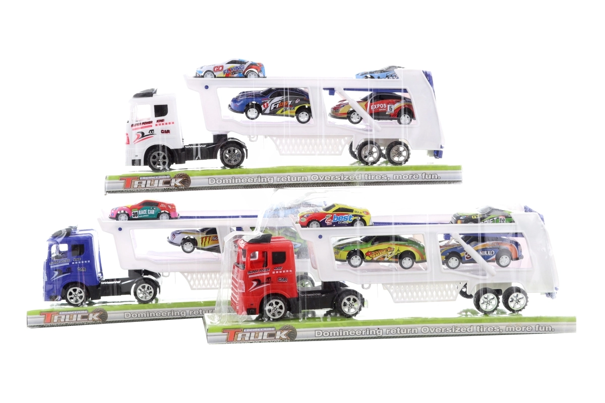 Denne stilfulde lastbil er klar til at transportere dine racere til næste store tur. Fire kompakte biler med friktionsmotor kommer let i gang og sørger for dynamisk leg. Det lette, men holdbare plastikmateriale er velegnet til daglig leg og nem håndtering for små hænder.