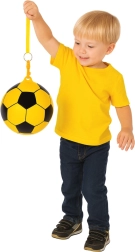 Gul gummibold med en diameter på 22 cm og fodboldmønster er ideel til leg både inde og ude. Den er lavet af holdbar, elastisk gummi, har en fremragende hoppeevne og kan takket være det praktiske øje udstyres med en snor til lege og reflekstræning. Let, sikker for børn og meget synlig på græs, strand og i haven.