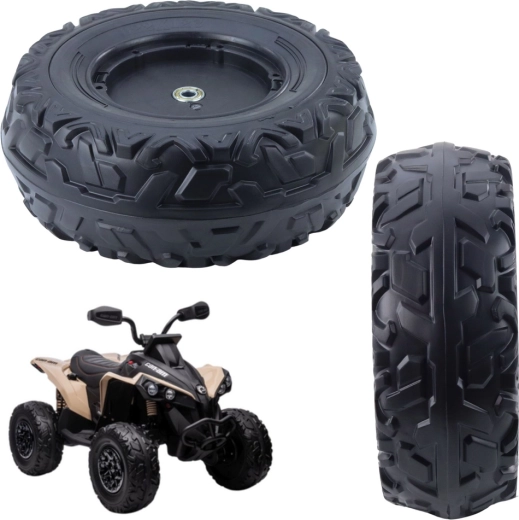 Det praktiske reservehjul til elektrisk legetøjsbil genskaber komfort og stabilitet på forskellige underlag. Den dybe profil giver fremragende vejgreb og tryghed i sving, mens den robuste konstruktion er klar til daglig brug.