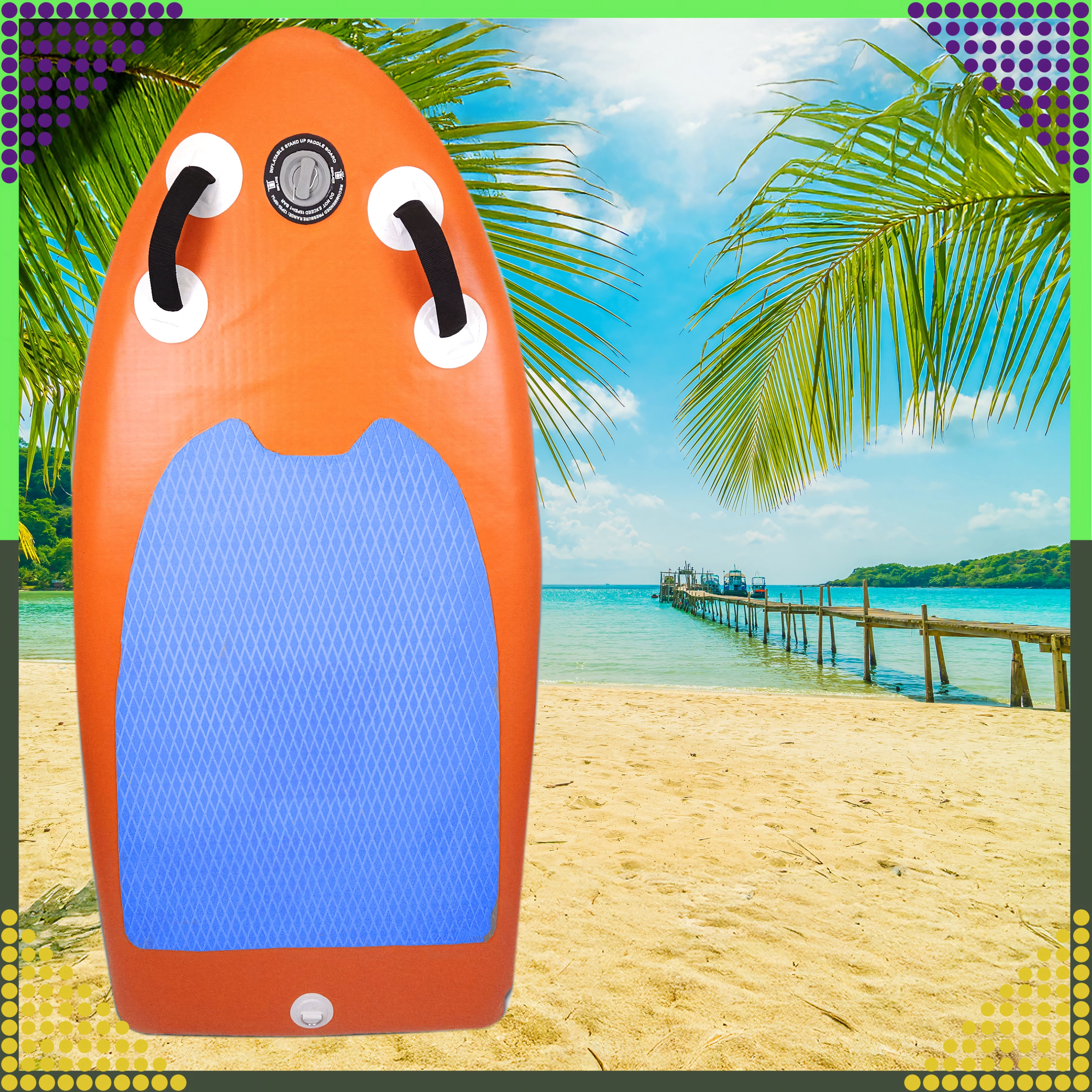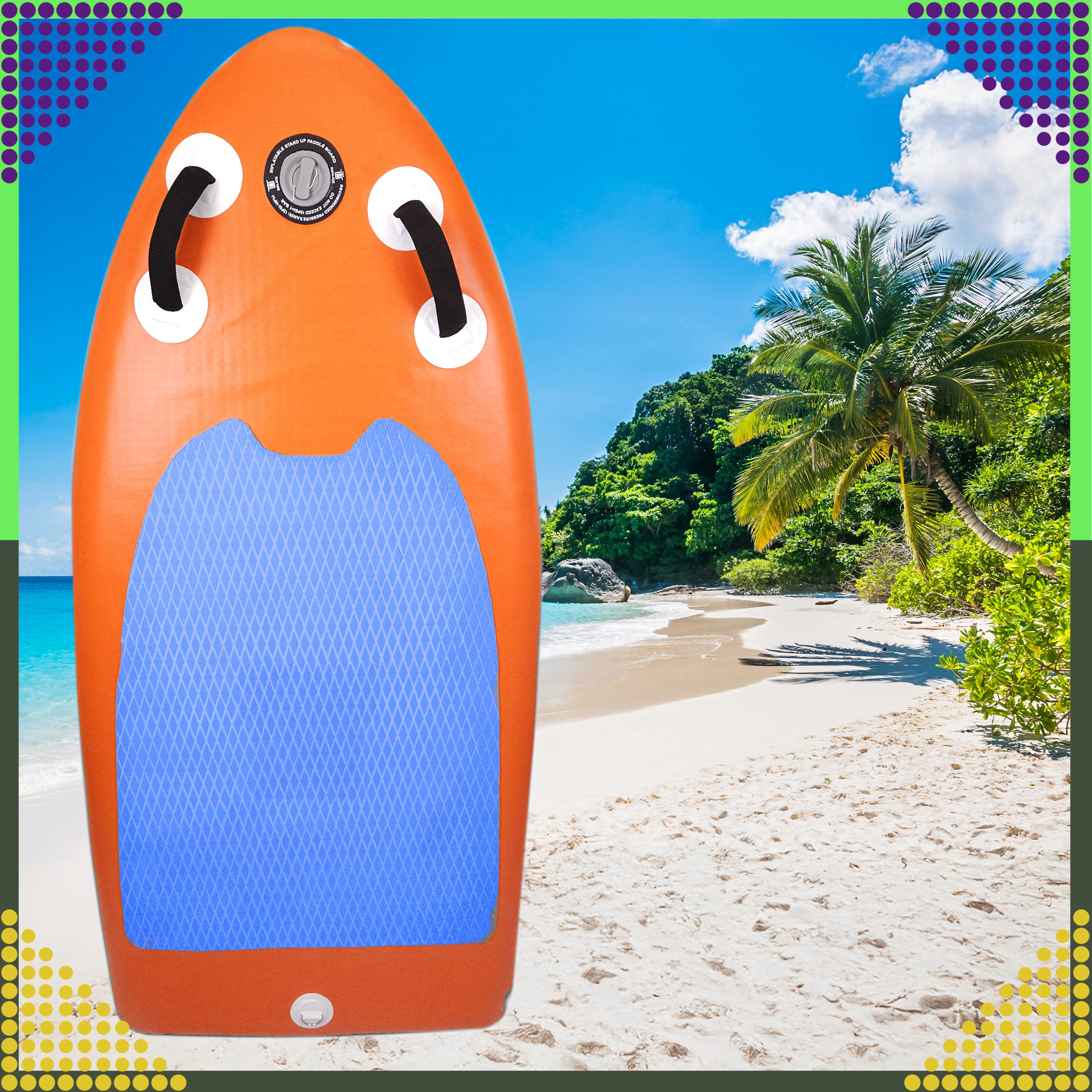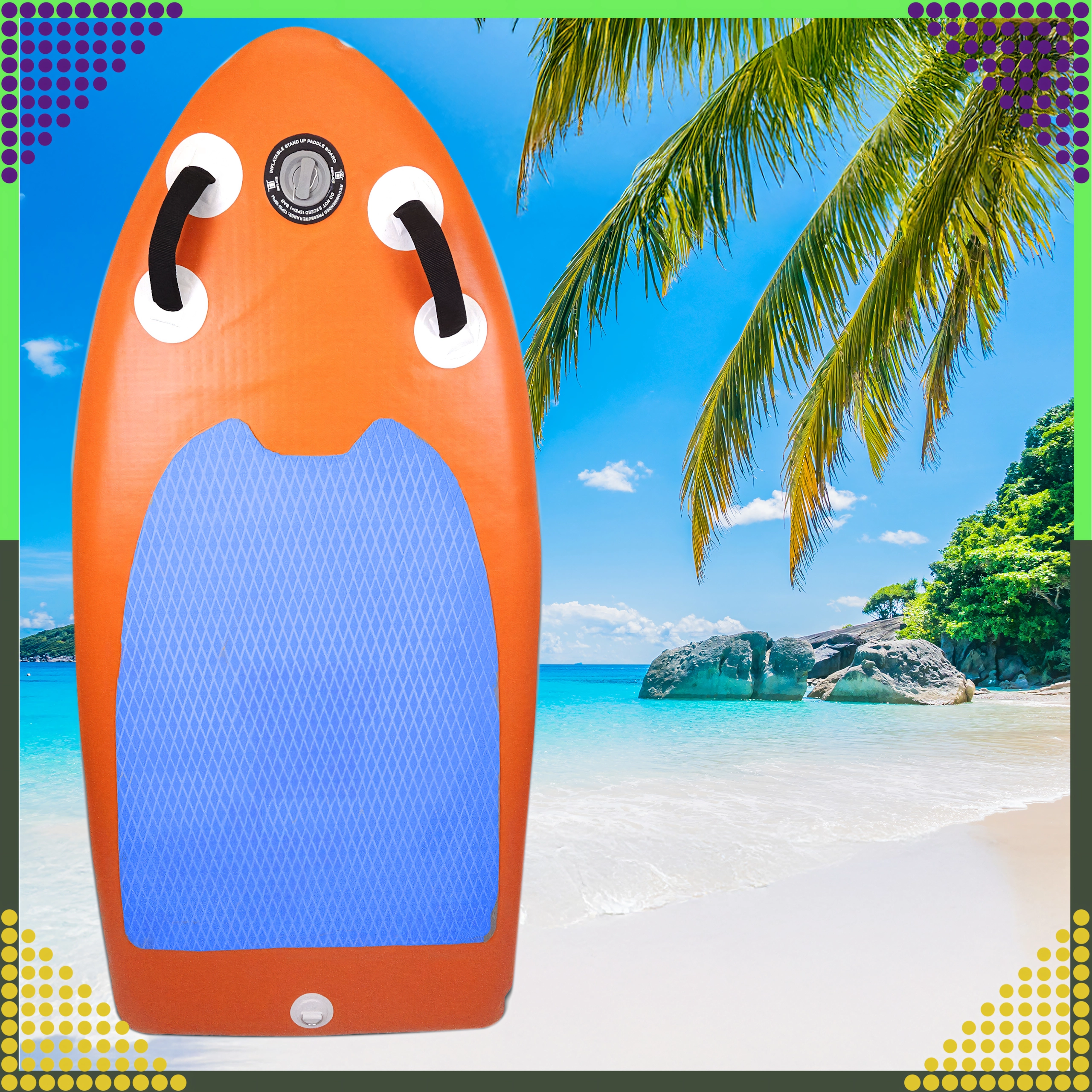 Dette oppustelige mini SUP-board er et fremragende valg til børn, teenagere og voksne, der ønsker et kvikt og sjovt board til stille vand og kortere ture. Konstruktionen med komposit overfladelag og forstærket PVC sikrer holdbarhed og lang levetid, mens den komfortable skridsikre EVA-måtte med diamantstruktur giver sikkert fodfæste selv i vådt føre.