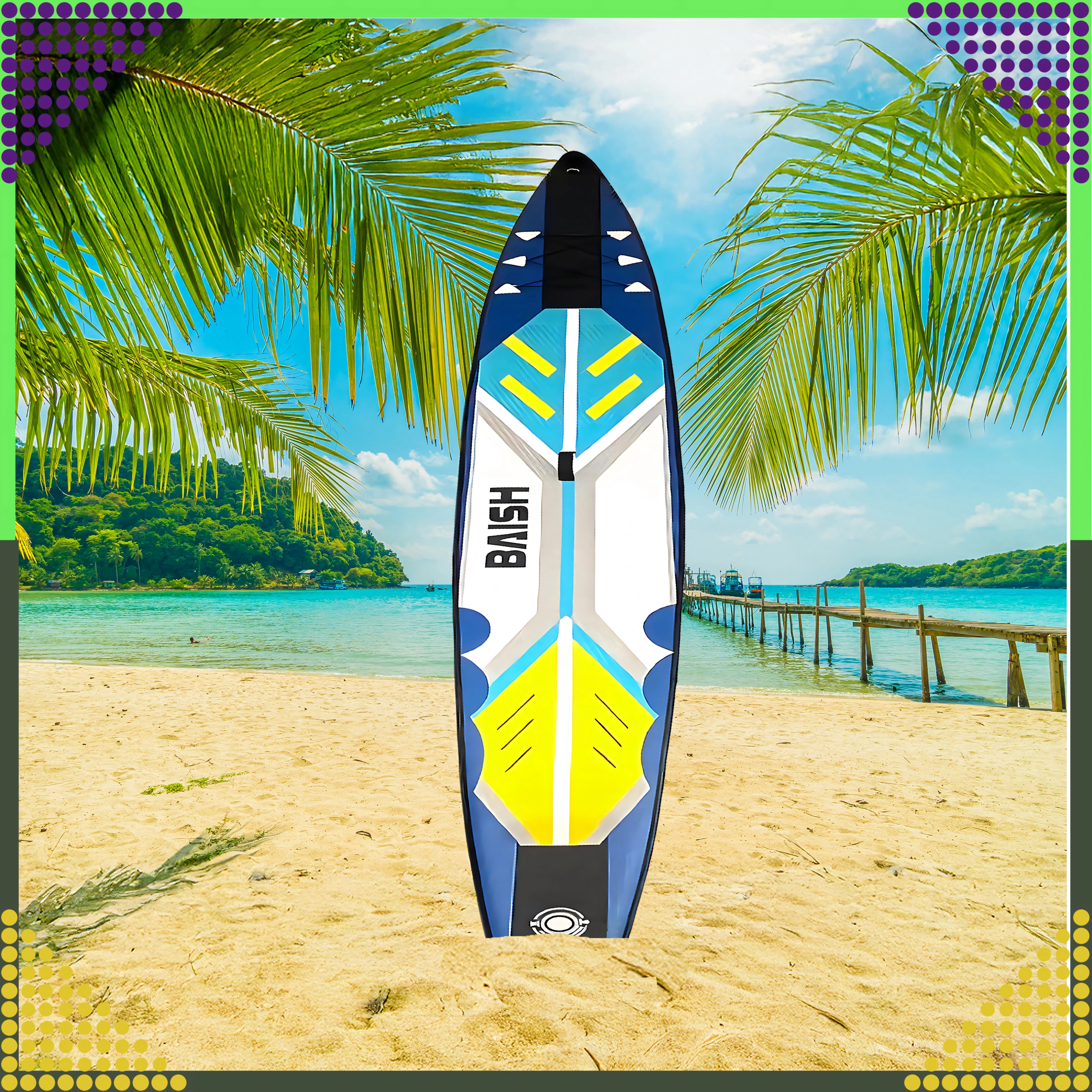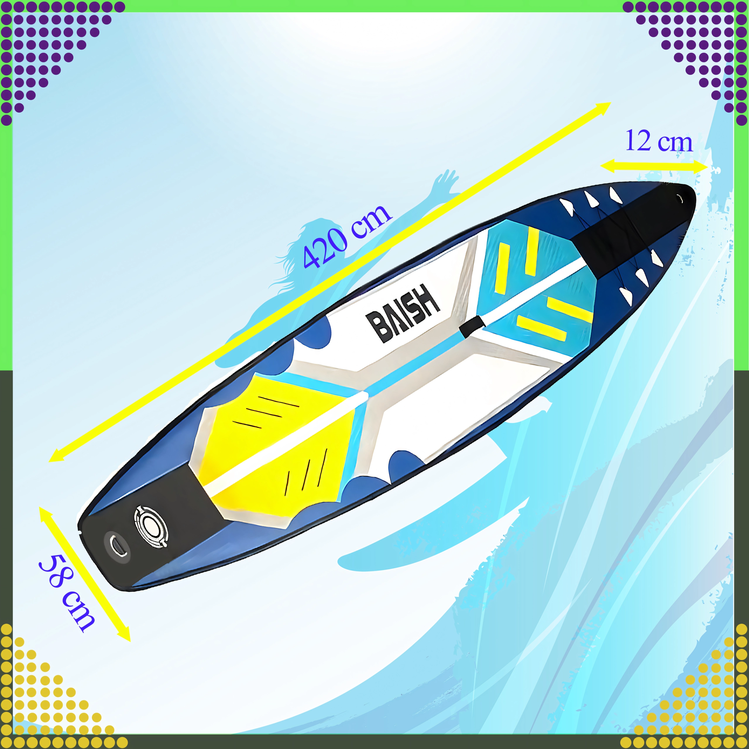 Denne alsidige SUP er designet til både begyndere og øvede. Den lange og smalle silhuet (420 × 58 × 12 cm) sikrer effektiv glideevne, stabilitet og hastighed på roligt vand og længere stræk. Den skridsikre EVA-skum med diamantstruktur øger fodfæstet og komforten selv under lange ture.