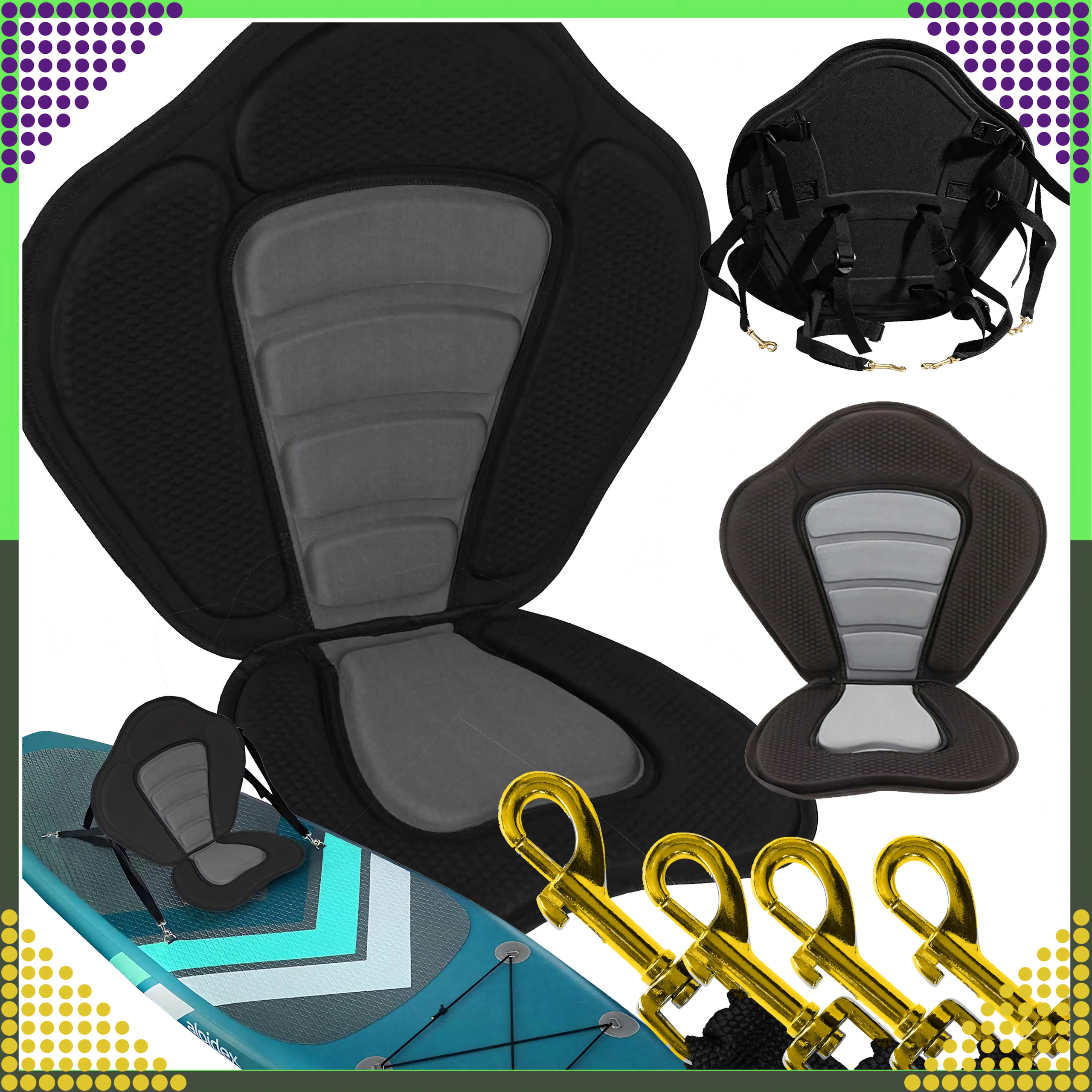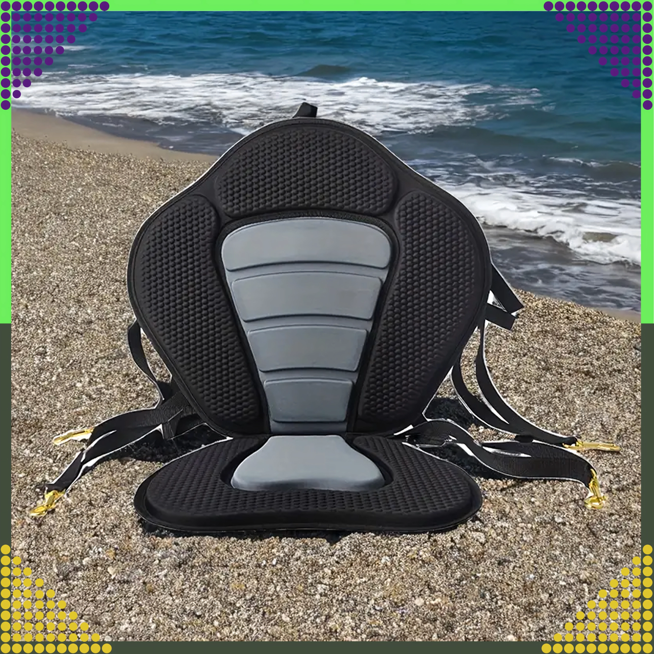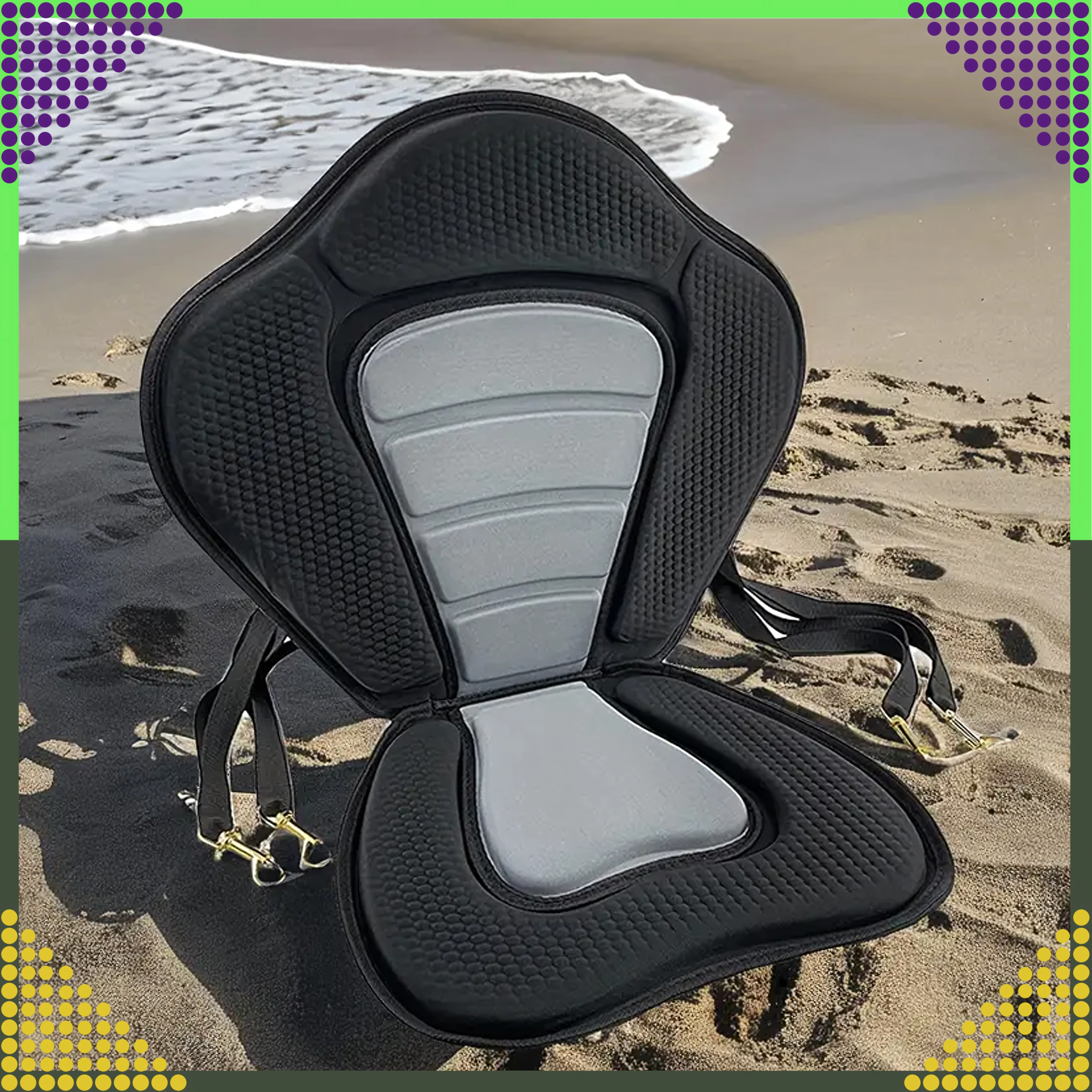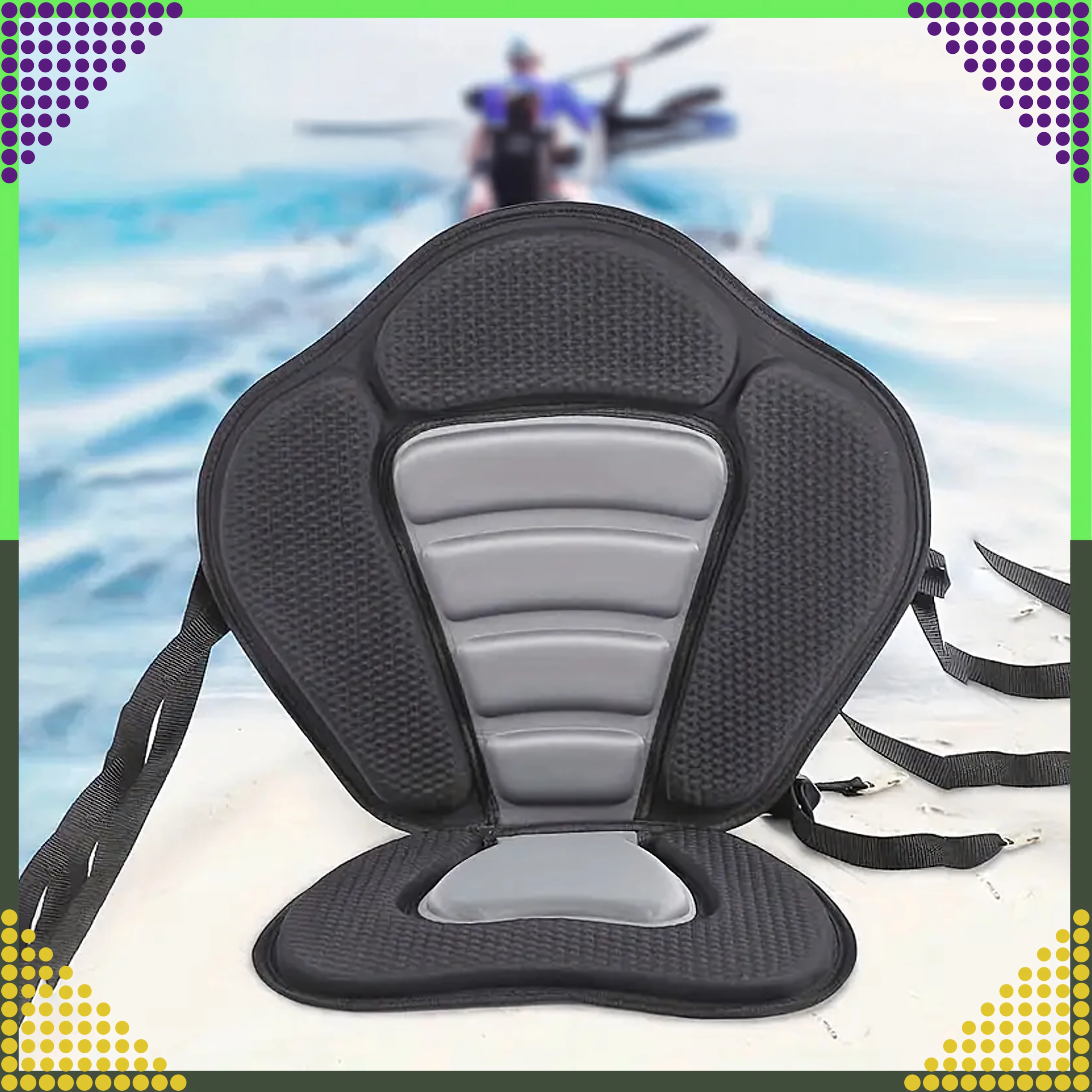 Forvandl din SUP til en komfortabel sit-on-top-kajak på få sekunder. Det ergonomisk formede sæde med højt og bredt ryglæn giver sikker rygstøtte, mens den polstrede, skridsikre base bliver på plads selv under længere roning. Neopreneskum suger ikke vand og giver både komfort og holdbarhed.
