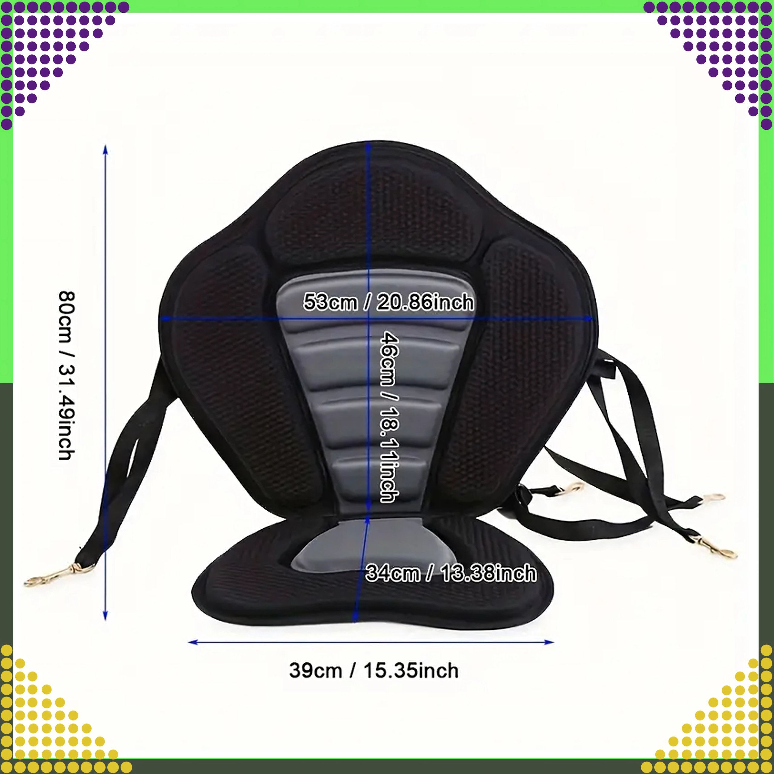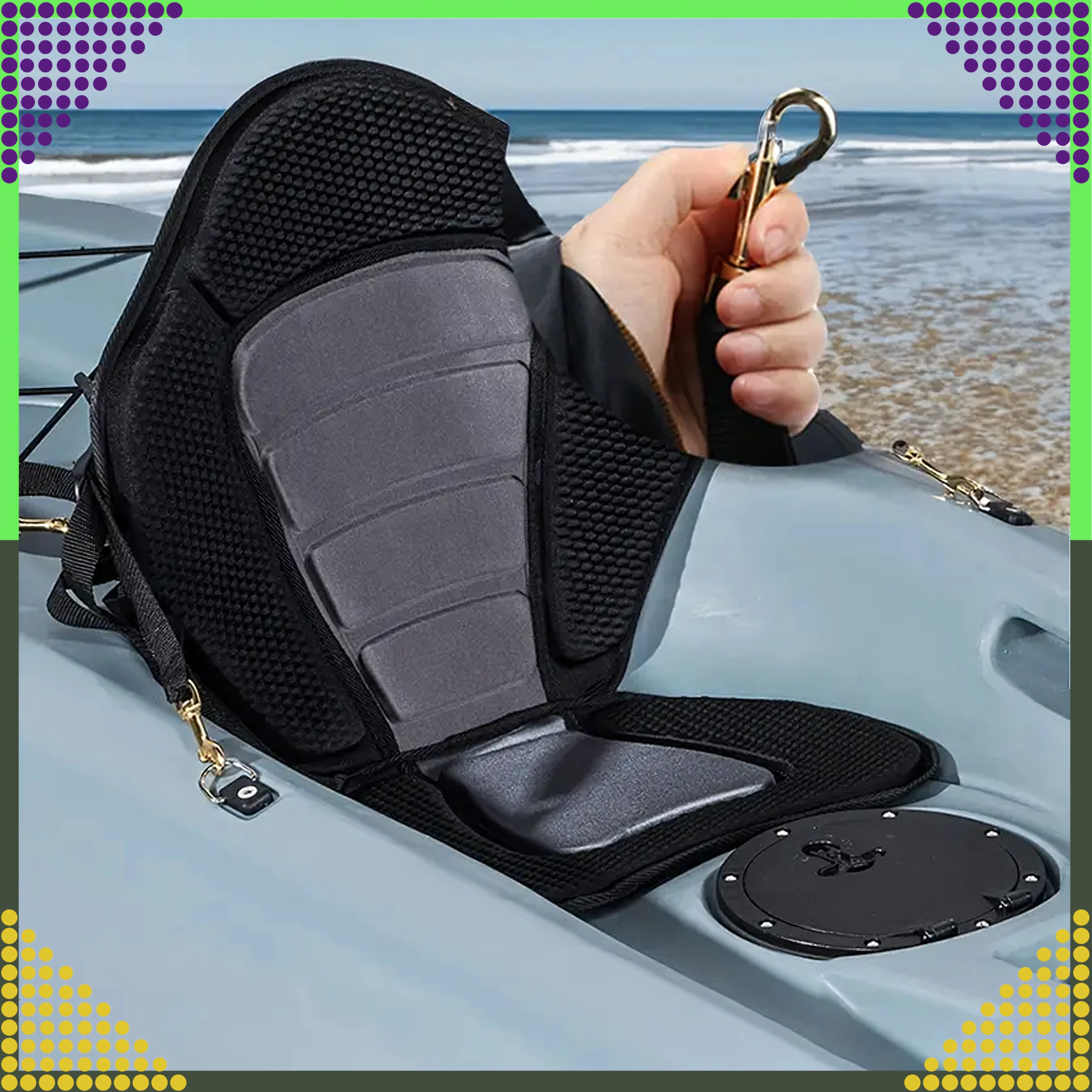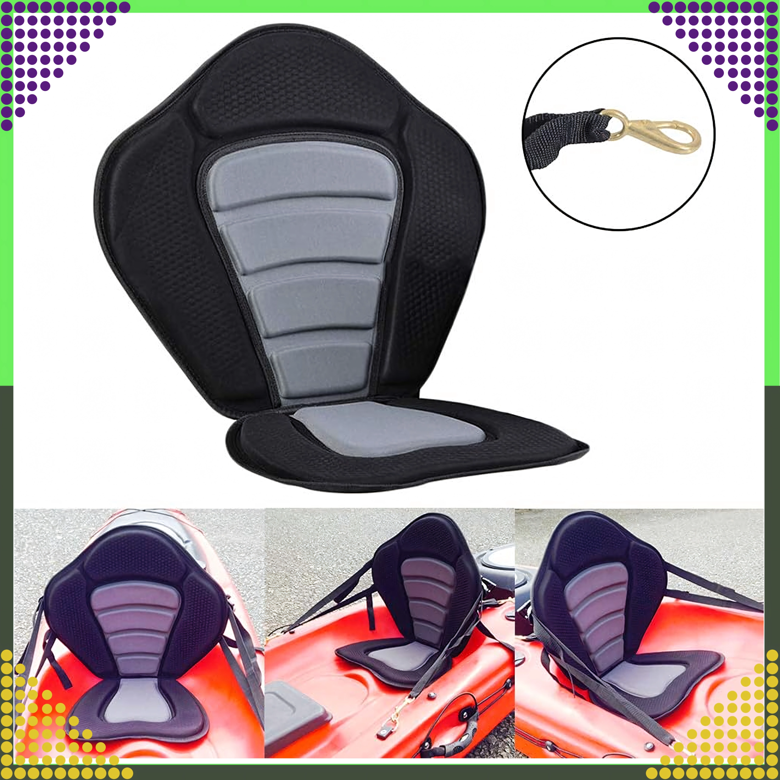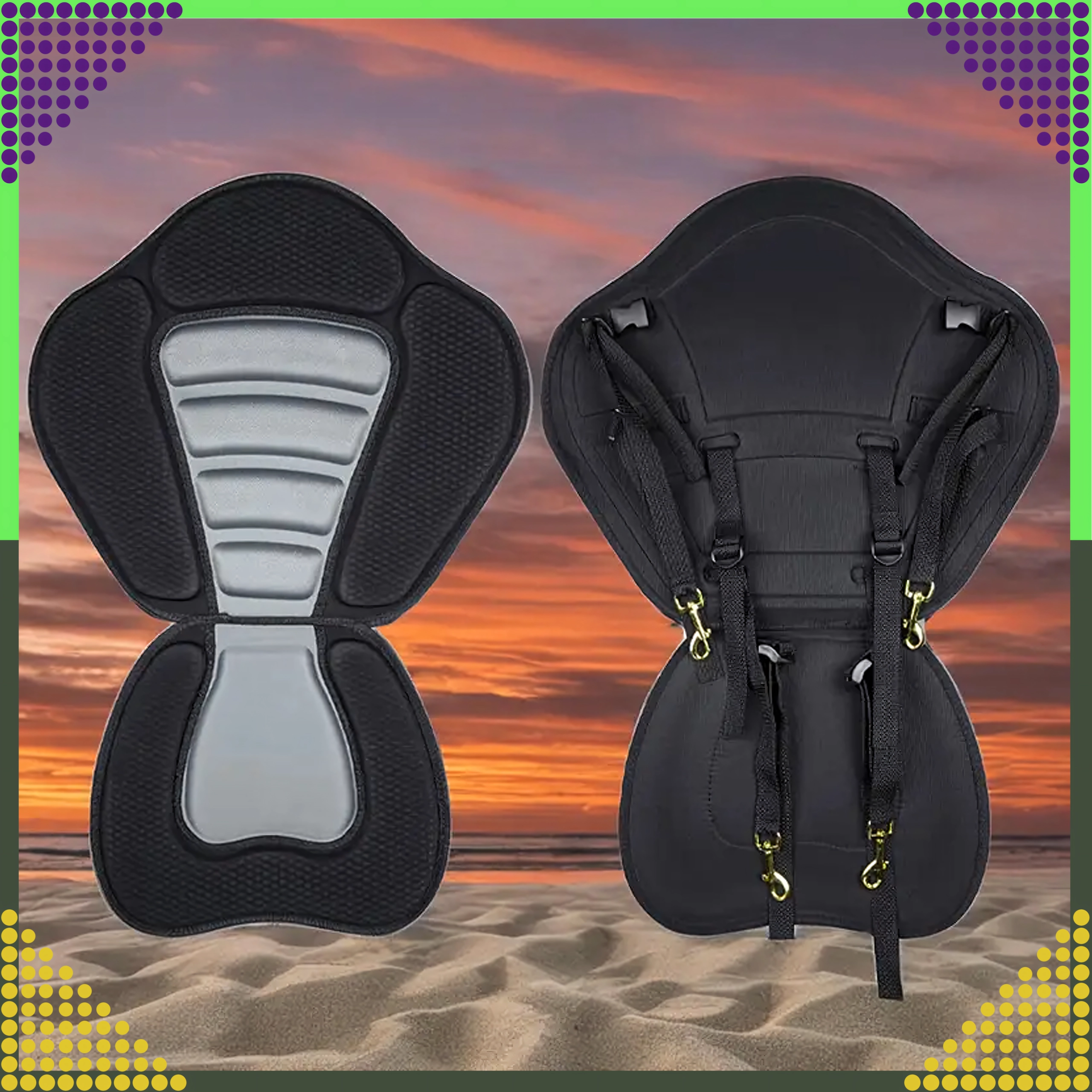 Forvandl din SUP til en komfortabel sit-on-top-kajak på få sekunder. Det ergonomisk formede sæde med højt og bredt ryglæn giver sikker rygstøtte, mens den polstrede, skridsikre base bliver på plads selv under længere roning. Neopreneskum suger ikke vand og giver både komfort og holdbarhed.
