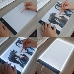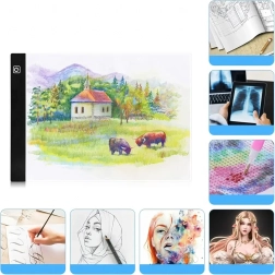 Dette tynde og bærbare LED-lysbord i A4 gør det daglige kreative arbejde lettere. Takket være den jævne baggrundsbelysning skinner linjer tydeligt igennem papiret, så overføring af tegneserier, illustrationer eller tekniske skitser bliver hurtig og præcis. Betjeningen er enkel med en berøringsknap, og strømforsyningen sker via USB fra bærbar, powerbank eller adapter.