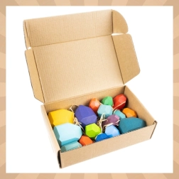 Sættet med 16 dele giver uendelige muligheder for kreativ byggeri – fra balancetårne til abstrakte mønstre. Den kompakte emballage gør opbevaring og transport let, så det passer til børneværelset, børnehaven og på farten.