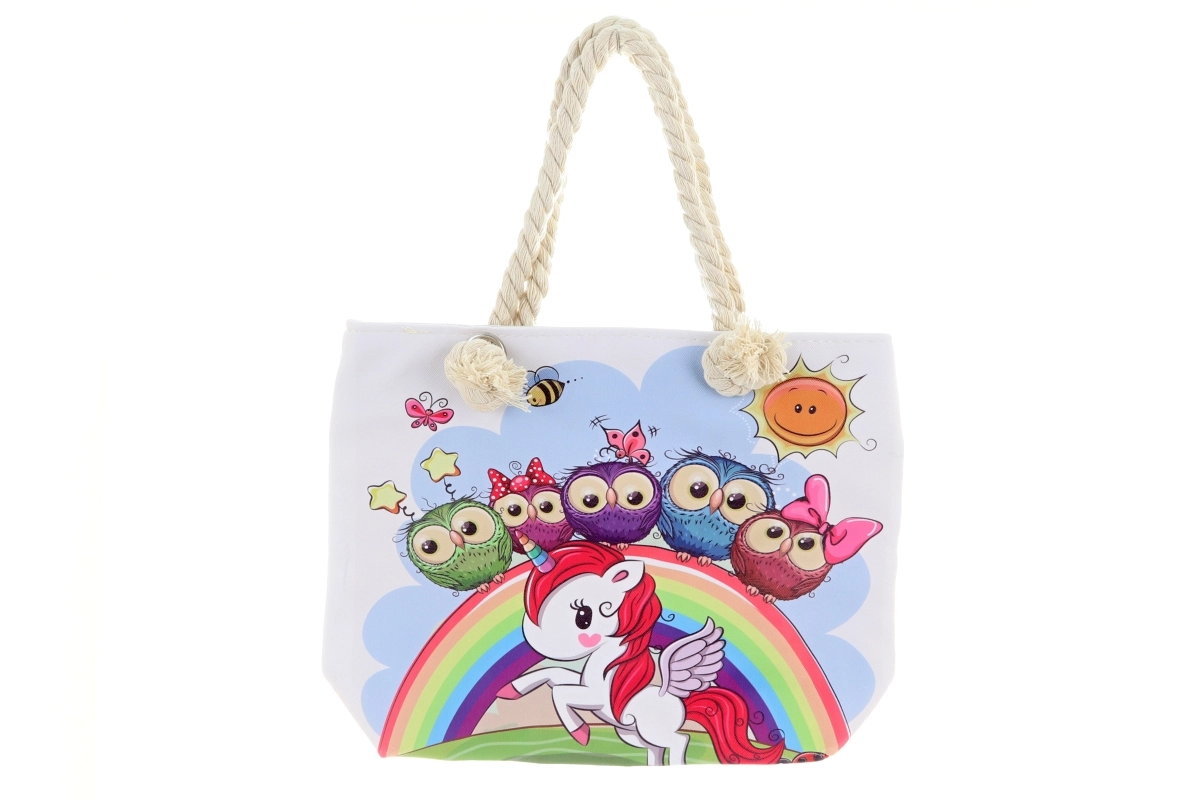 Denne søde skuldertaske med motiv af enhjørning og ugler er ideel til daglig opbevaring af små skatte. Den blanke forside i kunstlæder giver et moderne look, mens den stofbeklædte bagside sikrer lethed og komfort.