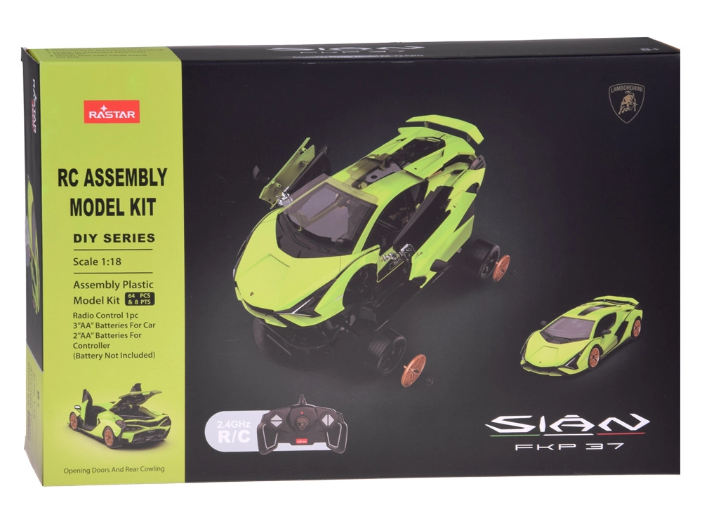 Rastar LAMBORGHINI SIAN FKP 37 byggesæt kombinerer glæden ved at skabe og adrenalinen ved at køre. Efter nem montering får du en fuldt funktionel RC-model med jævn styring, troværdigt karrosseri og præcist udført interiør. Takket være de åbnebare “scissor” døre og detaljerne under hætten virker modellen ekstra realistisk.