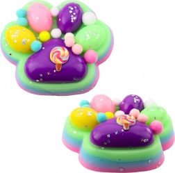 Slip spændingerne med den legende og effektive antistress‑squishy XXL i form af en kattepote. Takket være den bløde og eftergivende struktur giver den en behagelig klemmefornemmelse, som hjælper både koncentration og afslapning. Det originale look understreges af farvede kugler, glitrende konfetti og en lille dekoration i form af en slikkepind på overfladen.