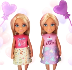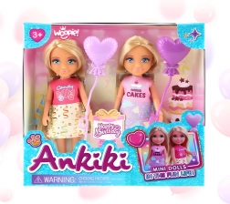 Det charmerende fødselsdagssæt med to mini-dukker Woopie Royal bringer en sød feststemning direkte ind på børneværelset. Dukkerne i stilarterne Candy og Cakes har lyst hår, moderne skørter og T-shirts med print og er klar til party med hjerteballoner. Fantastisk til fælles leg for søskende eller veninder.