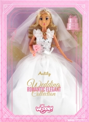 Træd ind i en verden af elegance og romantik med brudedukken Lily. Den smukke brud i en hvid tylskørt-kjole med pyntet korset og et fint slør begejstrer med sine gennemførte detaljer. I hånden holder hun en sød buket roser, og hendes lange lyse hår indbyder til at blive kæmmet og stylet.