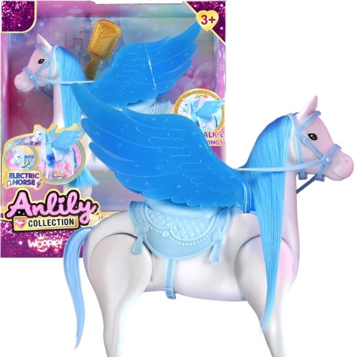 Træd ind i en verden af magi og fantasi med den smukke interaktive Pegasus, som bliver stjernen i enhver børnefortælling. Takket være den elektriske bevægelse kører hesten realistisk af sig selv, så børn kan genopleve deres yndlingseventyr igen og igen. Aftageligt sadel og tøjle, store dekorative vinger og et glitrende look giver endnu mere sjov.