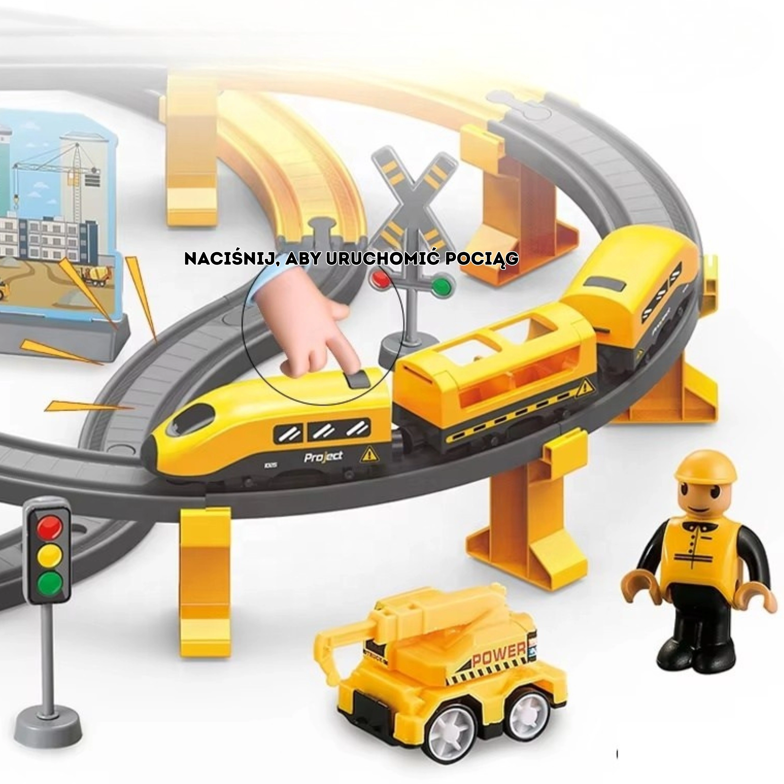 Med 92 elementer kan børn frit ændre sporlayout og designe nye ruter. Magnetiske koblinger gør det nemt at forbinde de to vogne, mens den medfølgende byggeteknik, en arbejderfigur og perron med stationsbygning skaber en levende scene. Sættet understøtter finmotorik, logisk tænkning, kreativitet og selvstændighed.