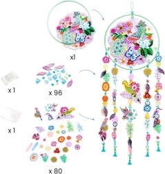 DIY-sættet fra DJECO gør det muligt at skabe en yndefuld solgardin med små fugle, som fortryller hver gang solstrålerne rammer. Dekorationen, inspireret af Feng Shui, bringer lethed, farver og et behageligt lysspil ind i rummet.