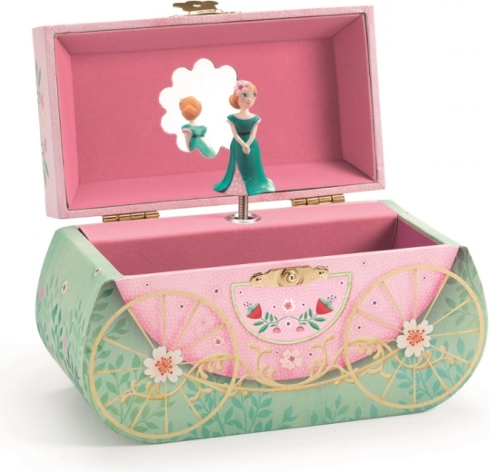 Elegant spilleæske med motiv af en magisk karet, som vil glæde små prinsesser og eventyrelskere. Når den åbnes, byder en blid melodi velkommen og der er plads til små skatte. En skøn gave til børneværelset og en stilfuld dekoration med høj kvalitet fra DJECO.