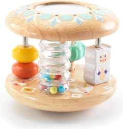 Opdag den første sanselige legeting, der både underholder og udvikler. DJECO Baby Tutti træ-rangle/rulle-cylinder kombinerer glat træ, spejl, perler og roterende elementer for visuel, auditiv og taktil stimulering. Sikkert afrundede former, høj kvalitet og støtte til finmotorikken gør dette legetøj til et ideelt valg for børn fra ca. 10 måneder.