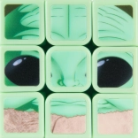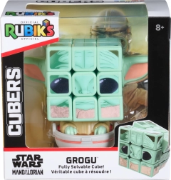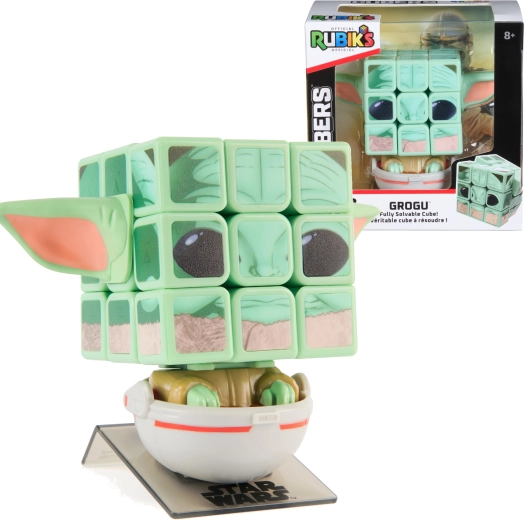 Oplev den originale kombination af hjernevrider og samlerfigur. Rubiks terning 3x3 med GROGU-motiv giver både løseglæde og et attraktivt look på hylden. Når brikkerne er samlet, dannes et billede af den populære figur Grogu på fronten, og de medfølgende dele gør det muligt at forvandle terningen til en dekorativ figur med fod.