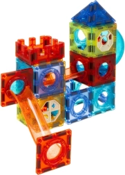 De gennemsigtige paneler forbindes sikkert takket være stærke magneter, så tårne, broer og ramper holder formen, og legen kan fortsætte uden unødige kollaps.