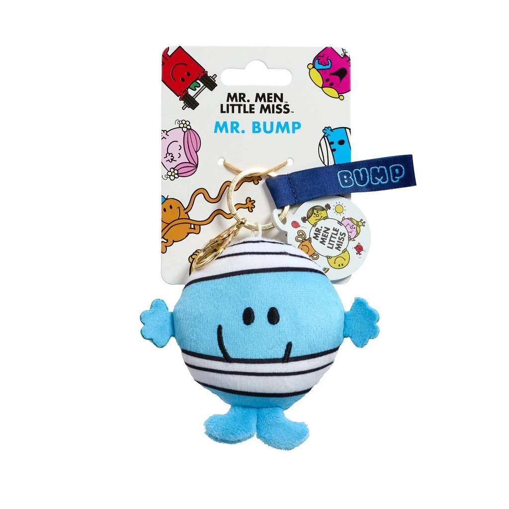 Den glade nøglering med figuren MR. BUMP bringer et strejf af nostalgi og et dagligt smil. Den blå krop med hvide stribede “forbindinger”, det broderede ansigt og den bløde plys gør den til en behagelig lykkebringer for både små og store. Takket være metalringen og karabinhagen kan den nemt sættes på lynlåsen i rygsækken, taskens hank eller nøgleringen.