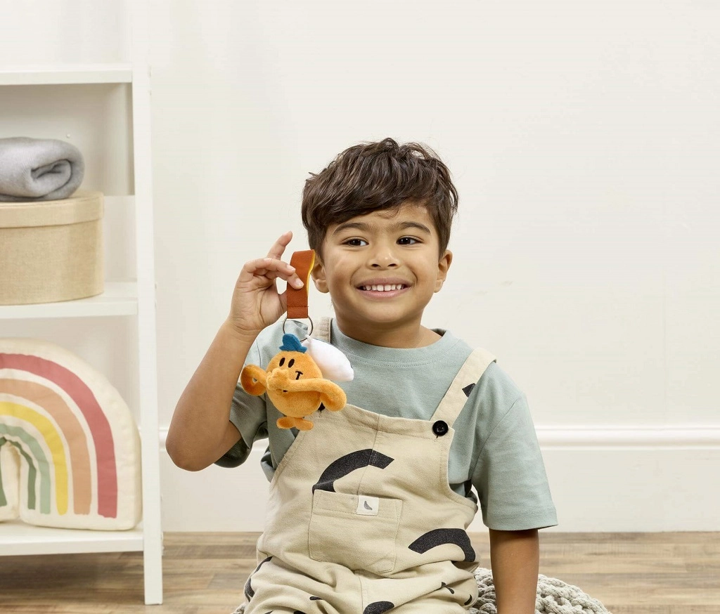 Den bløde plys er behagelig at røre ved, mens den robuste metalkarabinhage sikrer nem og sikker fastgørelse. Ideel til børn fra 18 måneder samt voksne samlere og fans af MR. MEN-serien af Roger Hargreaves.