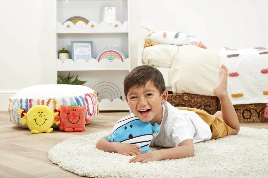 Mr. Bump fra den populære serie Mr. Men & Little Miss er lige præcis den plysbamse, der altid spreder glæde. Takket være fløjlsblødt materiale og let fyld er den ideel til at falde til ro og til hyggelige kram. De broderede detaljer ved øjne og smil sikrer sikkert design uden små dele.