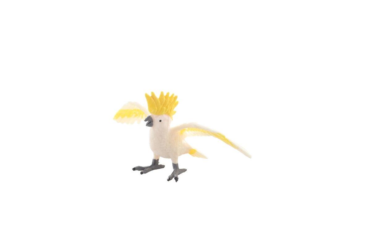 Den detaljerede fjertekstur, den gule top og den autentiske positur giver kakaduen et virkelighedstro udseende i både børneværelset og vitrinen.