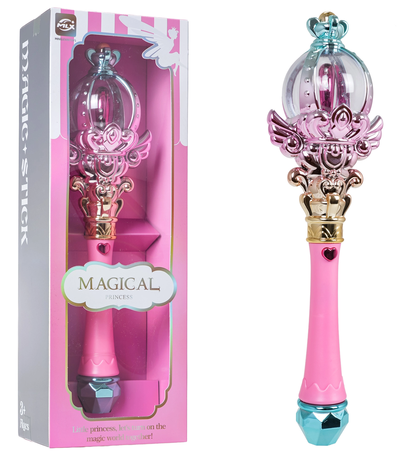 Denne interaktive tryllestav forvandler enhver leg til et eventyrligt oplevelse. Den transparente kuppel og krystalagtige detaljer lyser i grøn, blå og rød, mens knappen på håndtaget aktiverer magiske lyde og melodier. Ideel til leg som prinsesser, feer og troldmænd.