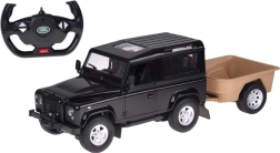 Rastar LAND ROVER DEFENDER i skala 1:14 er en præcist udført RC-model med fokus på detaljer. Den tilbyder åbningsbare døre og bagklap, soltag og et autentisk interiør. Den aftagelige trailer udvider legemulighederne – læs nemt småting på og kør “offroad”.
