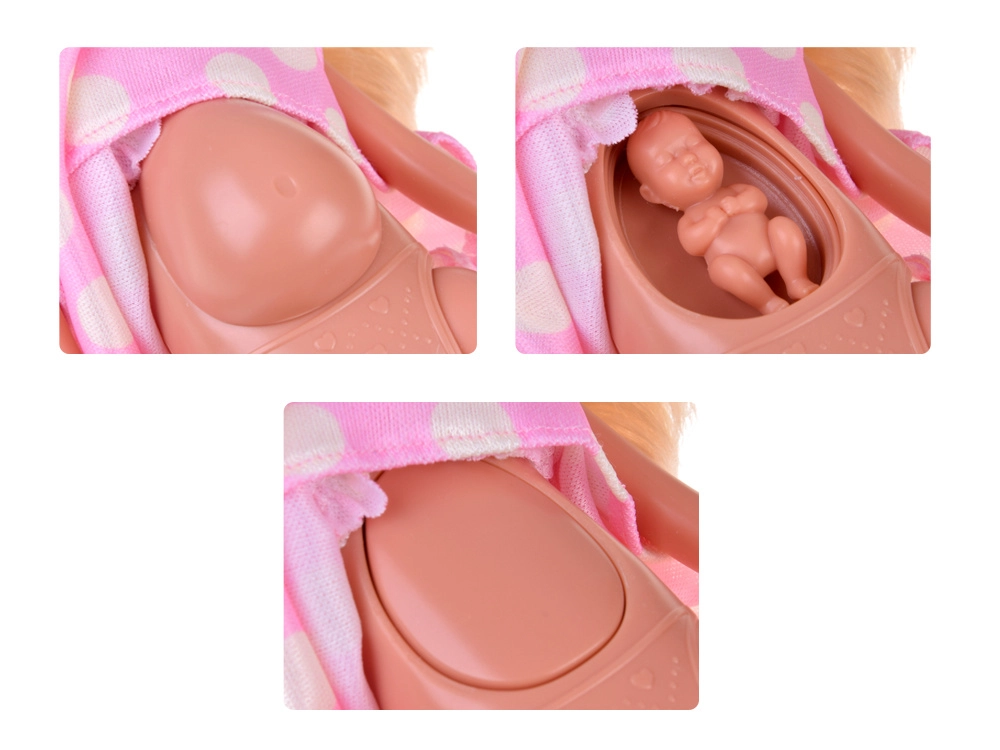 En særlig funktion gør det muligt at lægge en mini-baby ind og tage den ud igen – en nænsom måde at vise barnets ankomst til familien gennem leg.