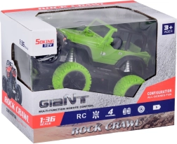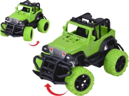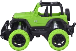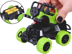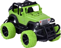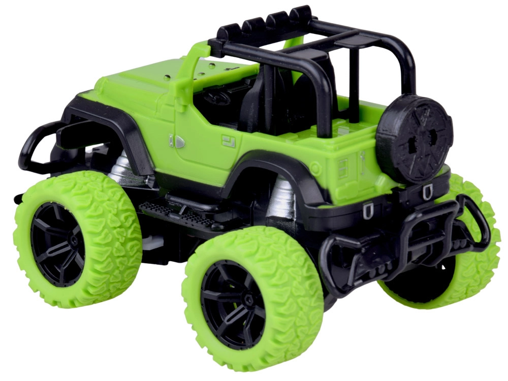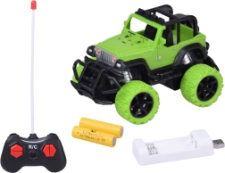 Nyd actionfyldt kørsel inde og ude med en robust RC-terrænbil i klar grøn farve med sorte detaljer. Store terrændæk af gummi sikrer solidt greb på forskellige underlag, mens justering af forhjulenes sporing/udslag hjælper med at finindstille ligeudkørsel og præcise manøvrer. To røde LED-dioder på undervognen giver en effektfuld stil under kørsel.