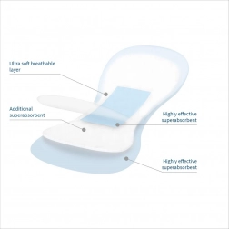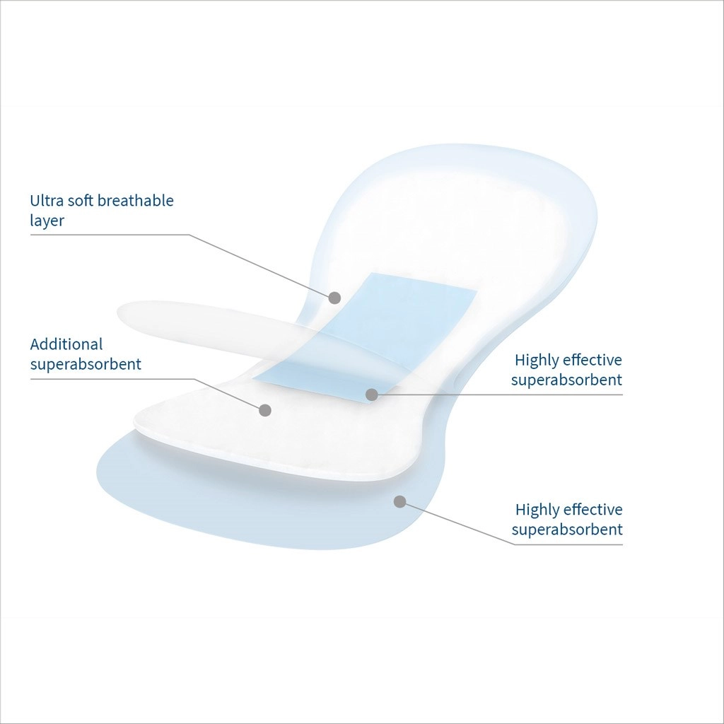Den særlige bølgede overflade fordeler væsken jævnt, så bindet ikke klæber til huden og minimerer irritation. Den nederste beskyttelsesfilm forhindrer gennemvædning og beskytter undertøjet mod tilsmudsning, mens den selvklæbende tape sikrer stabil fastgørelse både under bevægelse og når du ligger.