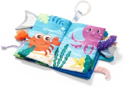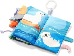 Denne bløde stofbog med havtema stimulerer alle barnets sanser – fra træning af greb over udforskning af forskellige overflader til at lytte til sidernes knitren. Klare farver og søde dyr fanger opmærksomheden og styrker koncentration og fantasi.