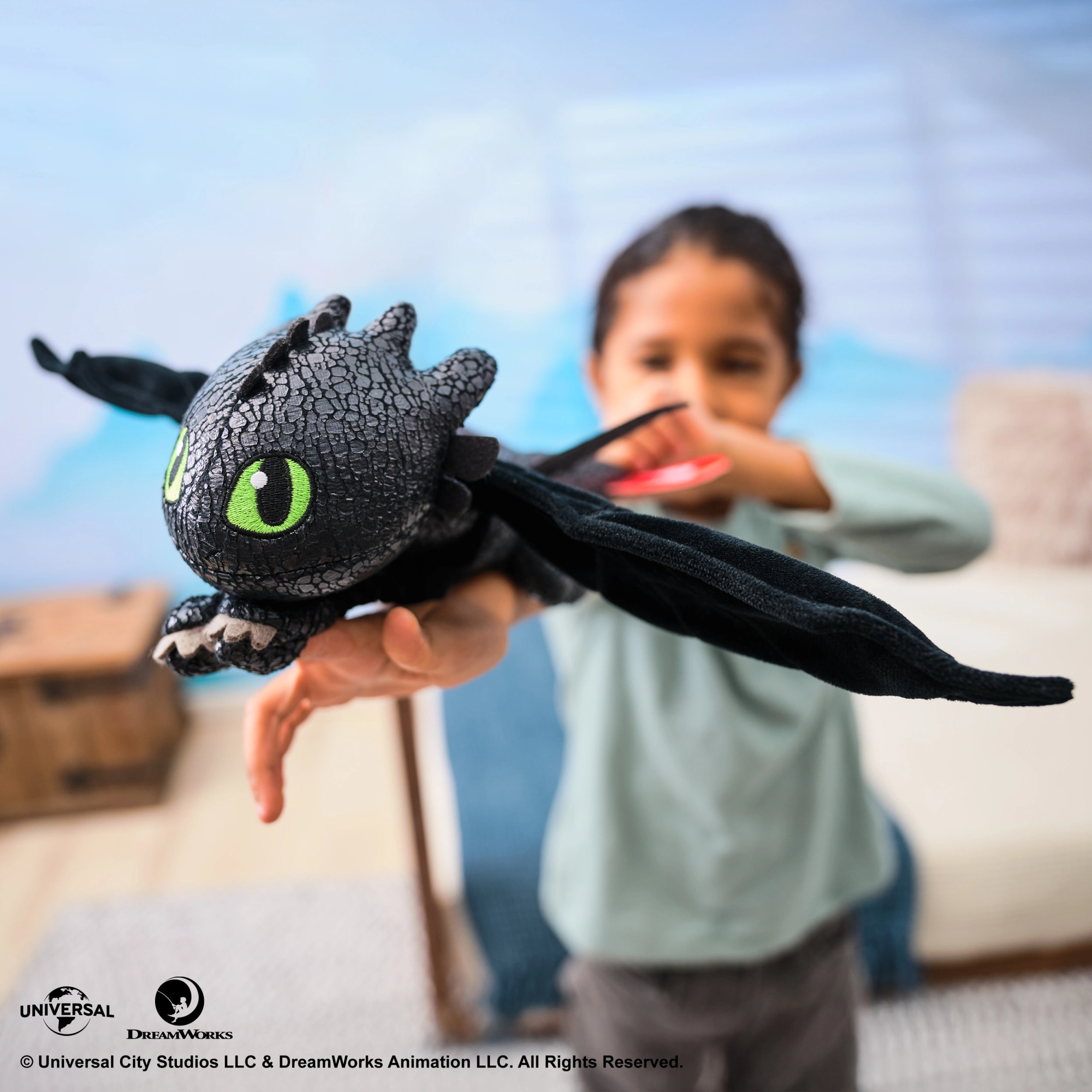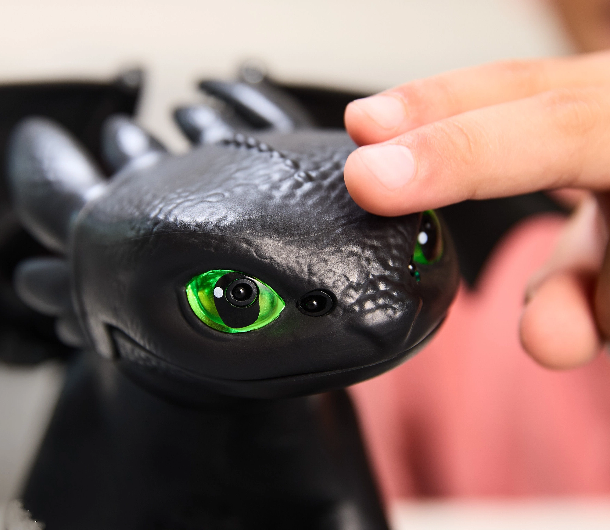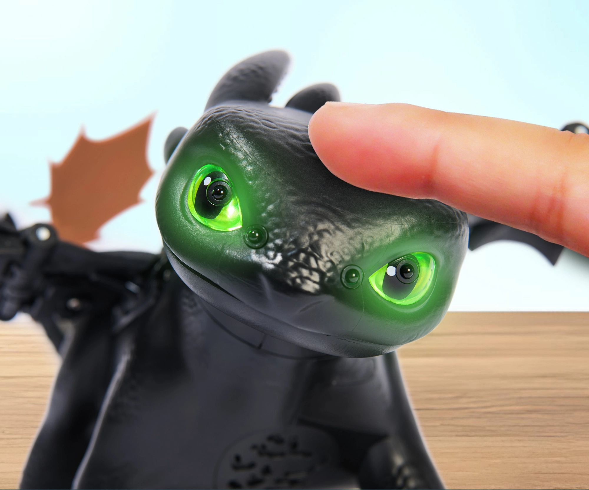 Figuren tilbyder 5 unikke personligheder og mere end 60 lyd- og lysreaktioner. Lås op for minispil som “keep away” (fange legen med fisken), “follow me” (følg mig) og “chicken”. På venskabets højdepunkt fremviser den et plasmaangreb – øjnene lyser blåt, og et vingefang på op til 51 cm fylder rummet. Løft dragen i luften for realistiske flyvelyde – ideelt til kreativ leg og genskabelse af filmscener.