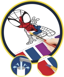 Sjovt malebogsblok med Spidey-motiver til små kunstnere. Den praktiske spiralindbinding rummer 20 malebilleder, og sættet indeholder 6 farver og en pensel – alt, hvad børn behøver for at komme i gang med at skabe derhjemme og på farten.