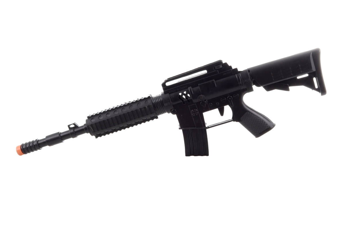 Maskingevær med teksturerede detaljer og orange sikkerhedsspids ser realistisk ud, men er egnet til børns leg fra 3 år.