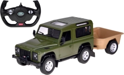 Rastar fjernstyret Land Rover Defender 1:14 med trailer – grøn