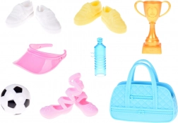 Dukken har led i arme og ben for naturlig posering. Der medfølger også sportstilbehør som bold, trofæ, drikkedunk og taske, der giver hver scene et autentisk præg. Ideel som gave til små bevægelsesglade børn.