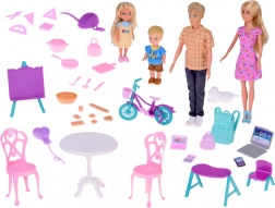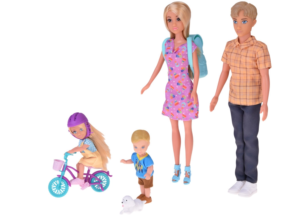 Fire dukker med detaljeret tøj og bevægelige led gør det muligt for børn at genopføre hverdagssituationer fra morgenmad til aftenhygge. En sød lille hund er også inkluderet.