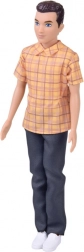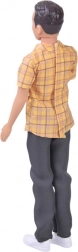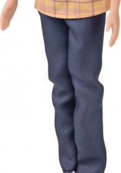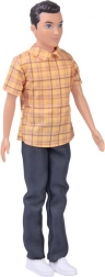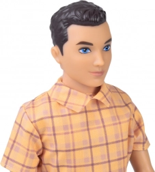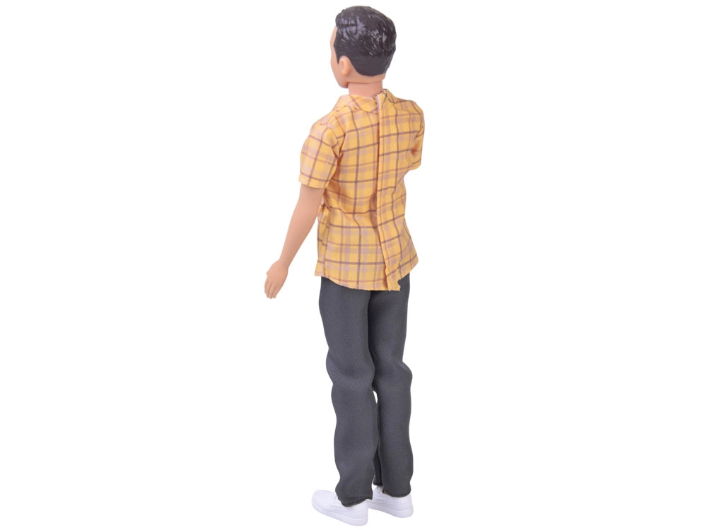 Outfittet kombinerer afslappet stil og markante farver: gul ternet skjorte, mørke bukser og hvide sneakers udgør et alsidigt sæt til forskellige lege-scenarier. Ledforbundne lemmer muliggør naturlige poser og dynamiske scener, hvilket understøtter udviklingen af fantasi og finmotorik.