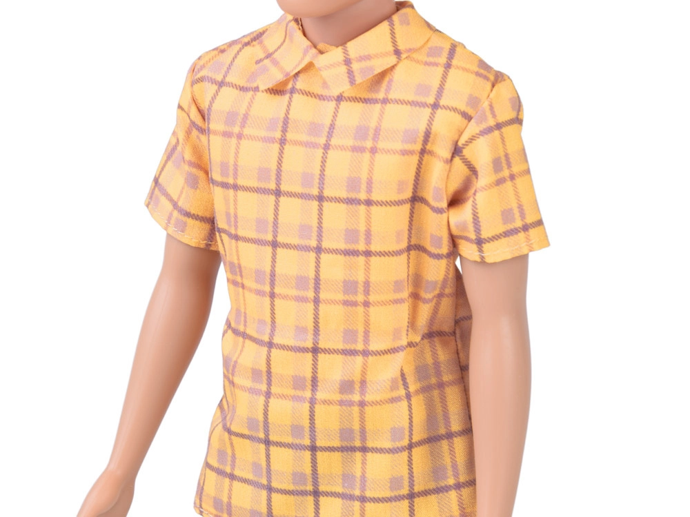 Den gule ternede skjorte med krave giver dukken et moderne look og er nem at kombinere med andet tøj.