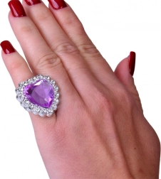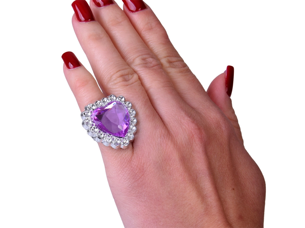 Sættet inkluderer en halskæde med en stor lilla sten, hængerøreringe og en markant ring – alt i en ensartet, betagende stil.