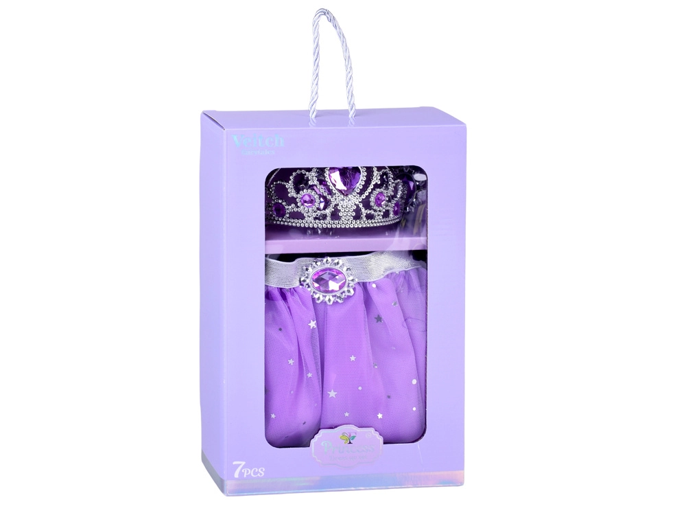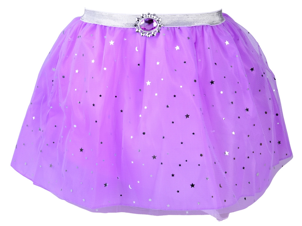 Forvandl enhver udklædning til et eventyrbal. Den lilla tutunederdel med funklende stjerner og måner betager ved første øjekast, mens den sølvfarvede krone, halskæde, ring og hængerøreringe med lilla sten fuldender det royale look. Elastisk talje sikrer komfort og nem påklædning.
