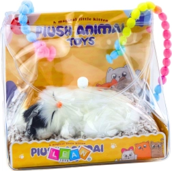 Den søde, sovende kat på en blød pude vil glæde både børn og dyreelskere. Den har blød, realistisk pels, trofaste detaljer og udsender miavelyde. Takket være den gennemsigtige bærbare taske med farvet hank kan børn nemt tage den med overalt. Perfekt som dekoration, legetøj og gave.