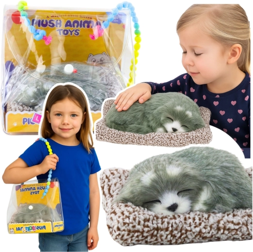 Den søde sovende husky på en pude er både en magisk dekoration og en legetøjsfigur. Takket være blød pels, realistisk udførelse og gøelyde virker den som en rigtig hvalp. Der medfølger en gennemsigtig taske med hank for nem transport – ideel til børneværelset, på farten og som gave til dyreelskere.