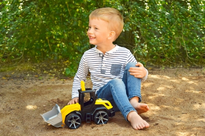 Robust børne-bulldozer LENA TRUXX 2 til leg både inde og ude glæder med bløde, stille hjul, åbningsbar kabine og bevægelig skovl med håndtag. Inkluderer førersfigur, robuste stålaksler og sikker udførelse. Fremstillet i Europa, TÜV-certificeret, egnet fra 2 år.
